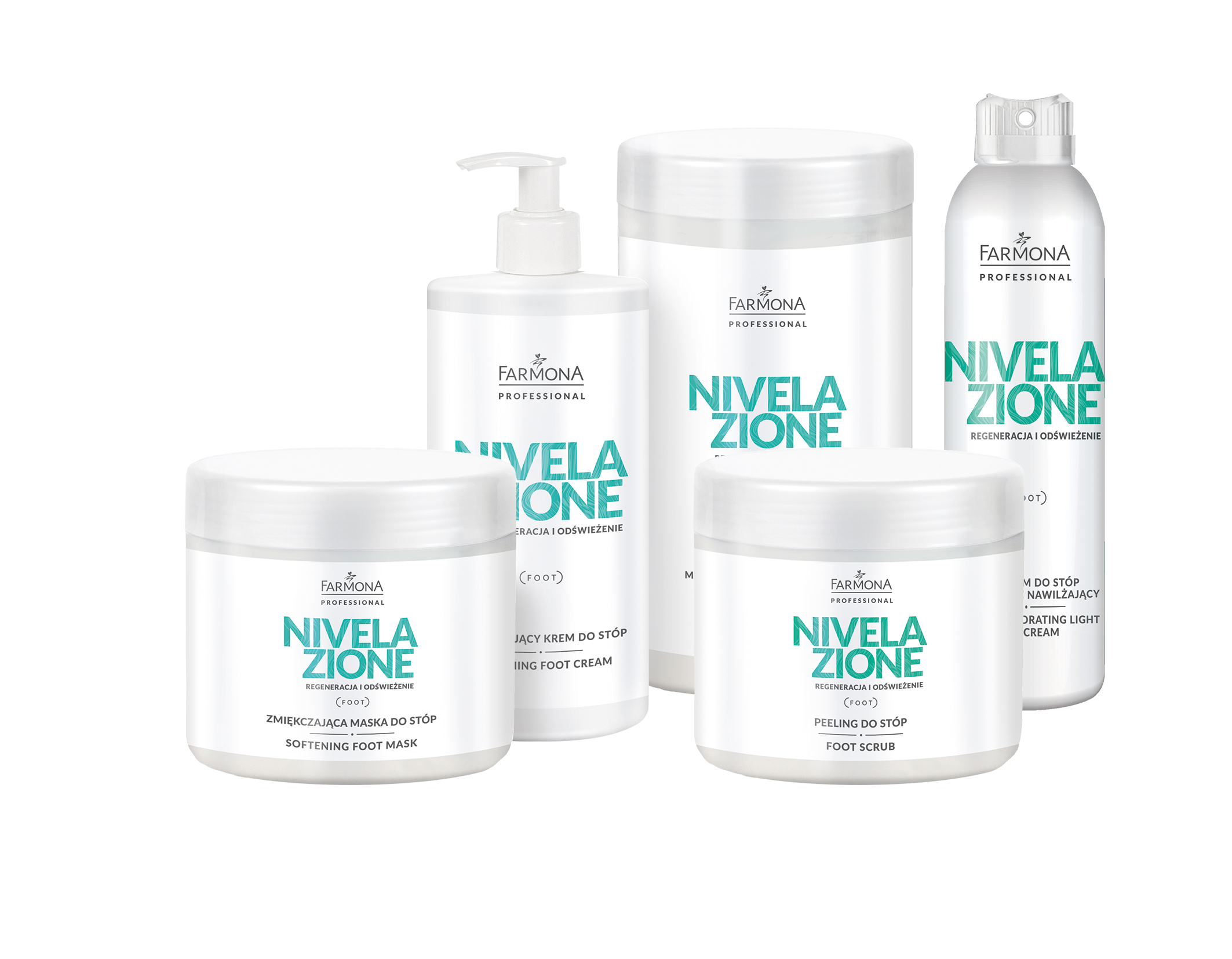 Linia Nivelazione to pełen zabieg odświeżająco-przeciwpotowy do stóp. Składa się z 5 produktów, które zostały wzbogacone o składniki aktywne neutralizujące nieprzyjemne zapachy i zapewniające uczucie komfortu i świeżości na długi czas. Dodatkowo produkty silnie zmiękczają i nawilżają skórę stóp, a ich zapach i roślinne ekstrakty zapewniają intensywne uczucie odświeżenia. Linia zmniejsza opuchnięcia i uczucie „ciężkich” stóp.